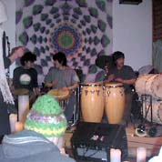 3月23日、何かイベントがあるらしいと聞き、さっそく田んぼの中にあるバンブートーンへ行ってみた。30歳台の若い男女がいっぱい。ライブの乗りでいい感じだ。朝までやるぞ!ということだ。タイトルは、”みどり&バンブートーン”。バックパカーズのためのB&BとCafeをやっている”anuenue” http://www.anuenue-backpackers-herbs.orgのオーナー・20歳代のカップルがコーディネイト。こんな若者達と乗り乗りで楽しんでいるのがバンブートーンのオーナー・鶴さんだった。